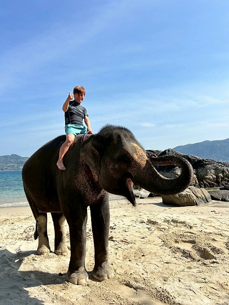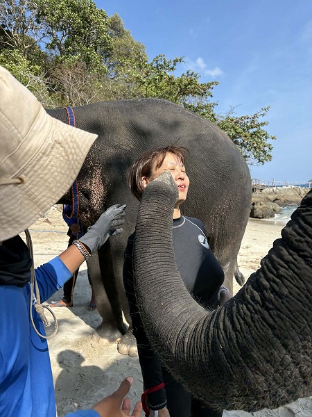 念願のゾウと遊べて大満足”!