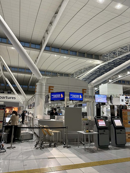 久々の福岡空港国際線、シンガポール航空はチェックインが機械化されてました。