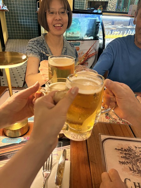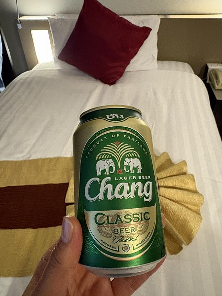 古いけど広い部屋で、タイのビールで乾杯(^^)/