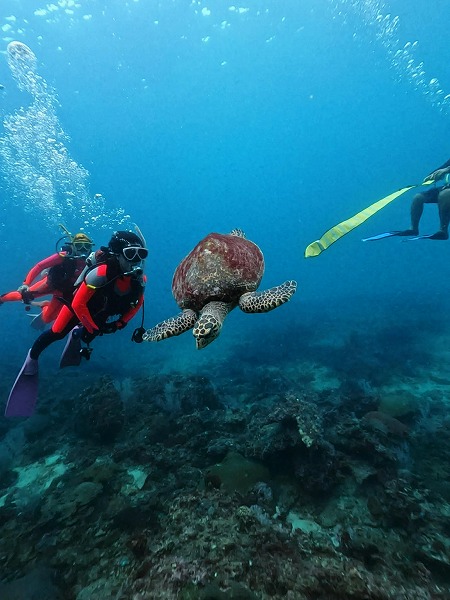 浮上直前にカメも登場。
