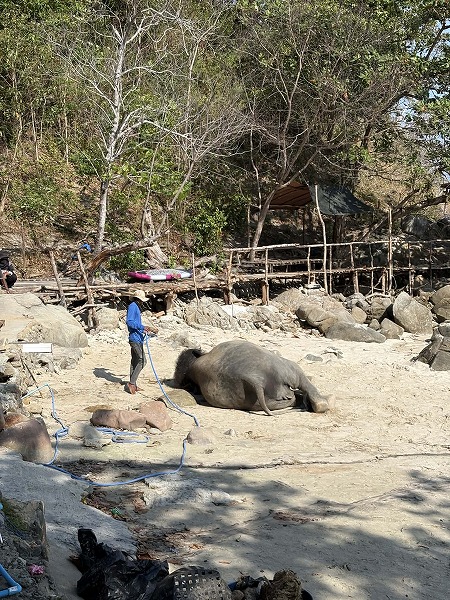 ゾウ使いさんにきれいに洗ってもらってるそばからゴロゴロしたり💩したりしてました。