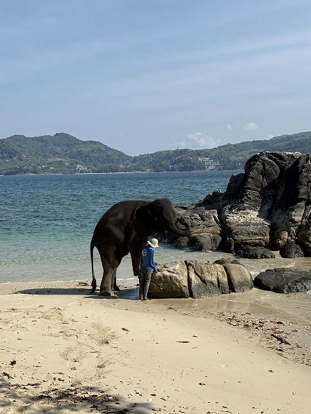 ただ私たちが参加したゾウ乗り体験はビーチでの開催でした。