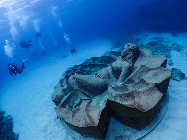 ここは水原希子さんをモデルに水中彫刻家・ジェイソン・デケアス・テイラー氏が制作したもので、