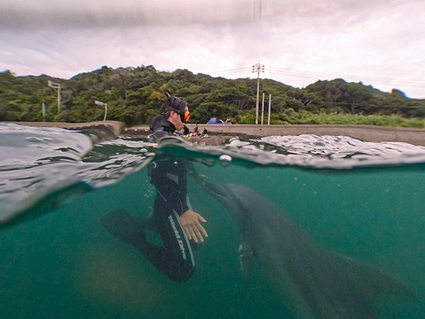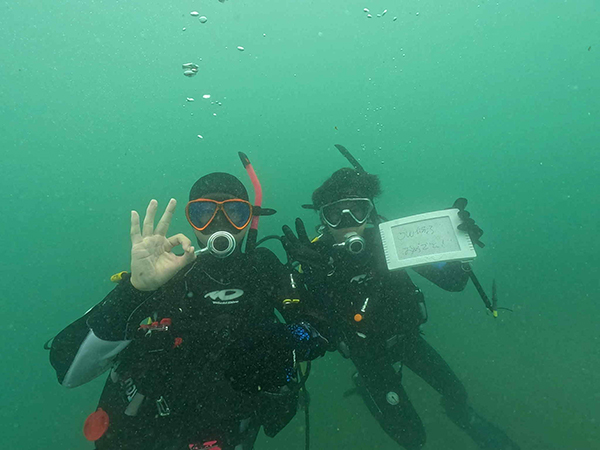 この時期から内湾側に潜る機会が多くなり、ダイバーがよく来るので遊びたがって